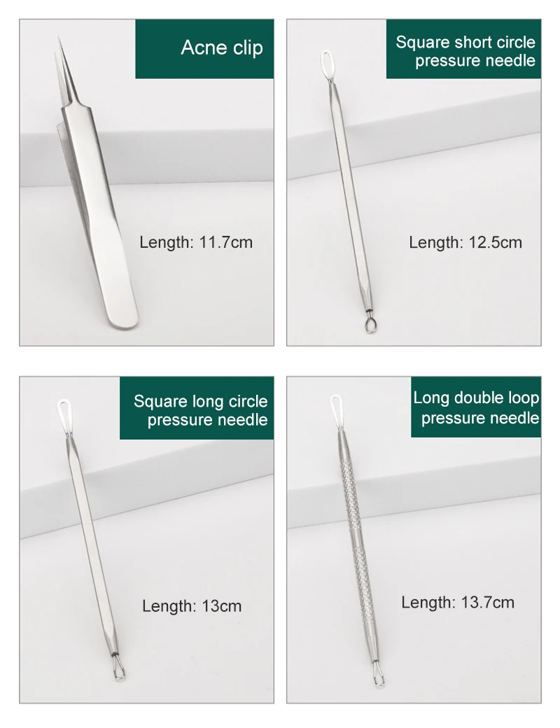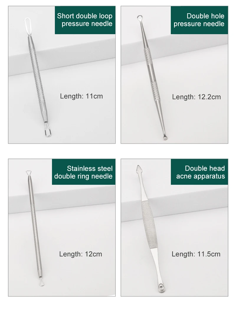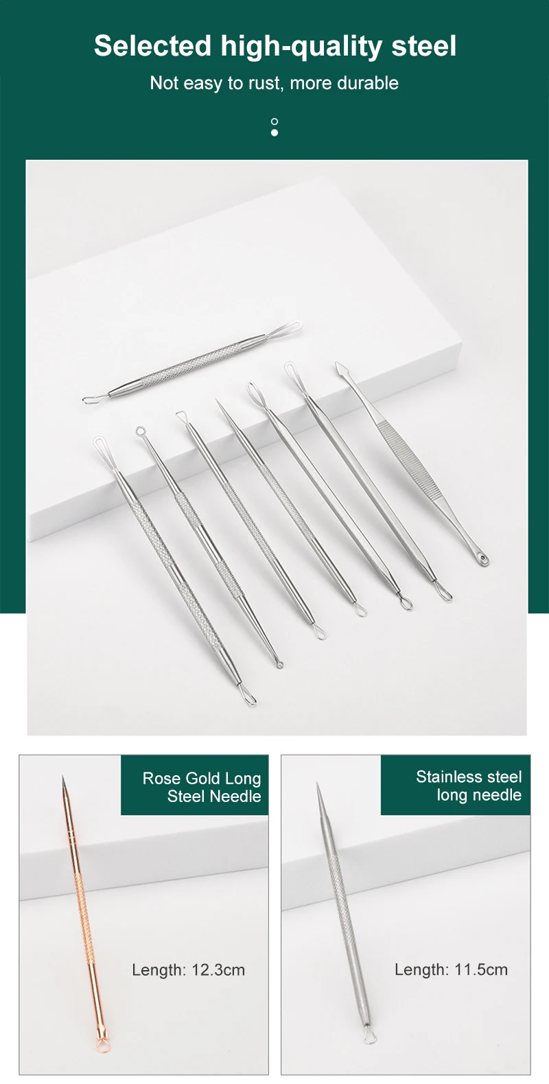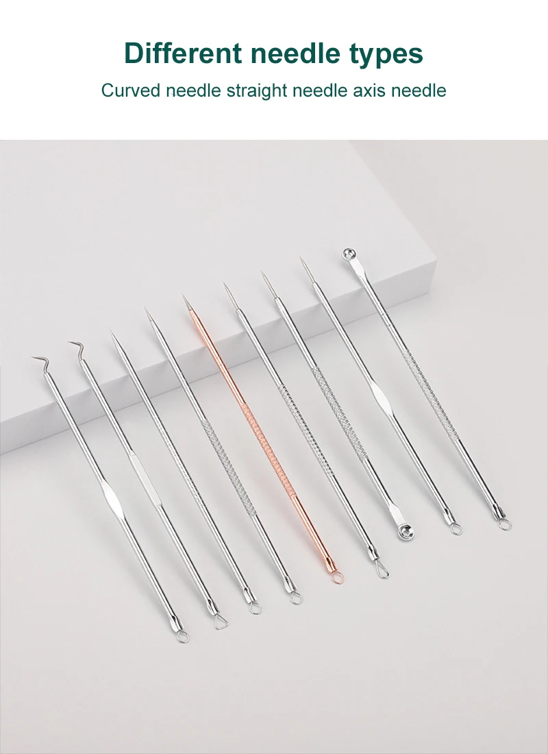 الفولاذ المقاوم للصدأ إزالة الرؤوس السوداء عدة حب الشباب إبرة حب الشباب العيب بثرة النازع مزيل الإبر الوجه العناية بالبشرة أدوات تنظيف