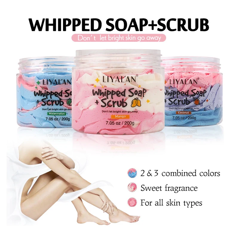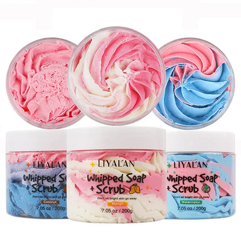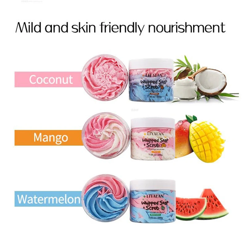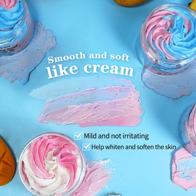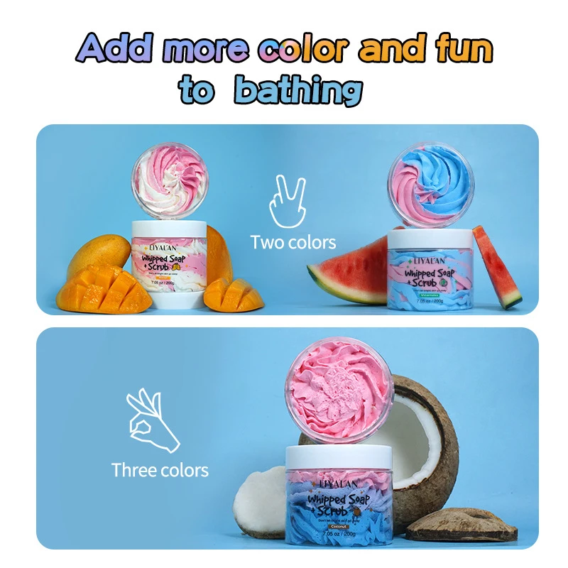مقشر جوز الهند والمانجو والبطيخ المسحوب، صابون سحبت بألوان مختلطة، مقشر للجسم، حمام تنظيف، مقشر 250 جرام