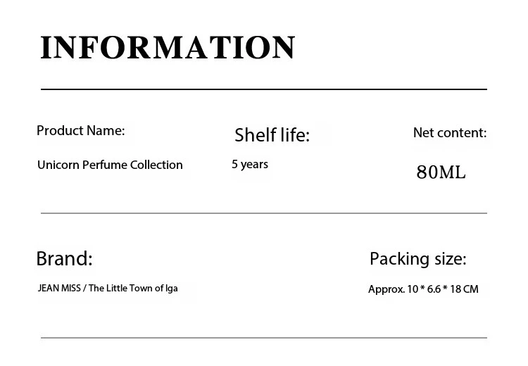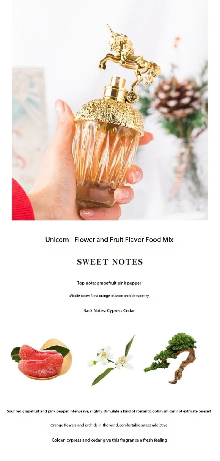 - feature: Unicorn Series Perfume,Women’s Perfume,Plant Floral Scent,Fresh Perfume,Natural Perfume Ingredients,Lasting Fragrance,Pheromone Infused Perfume,Light Fragrance,Unicorn-Themed Perfume,Elegant Perfume Design,Floral Notes Perfume,Unicorn Perfume Collection,Perfume for Everyday Use,Perfect Gift for Women,Fresh and Clean Perfume